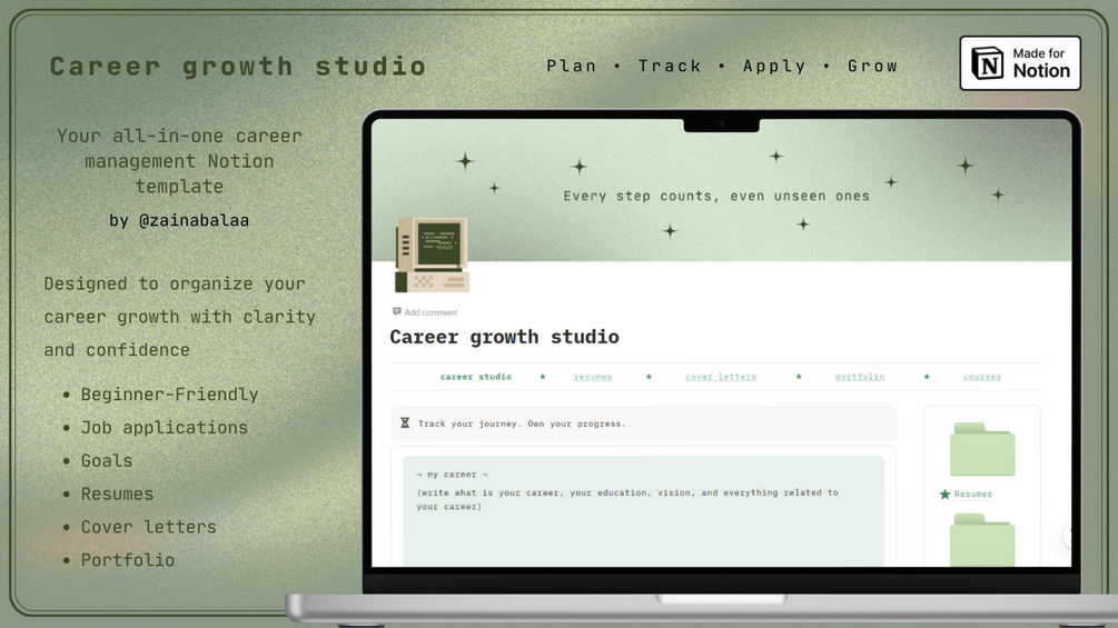 Career growth studio notion template